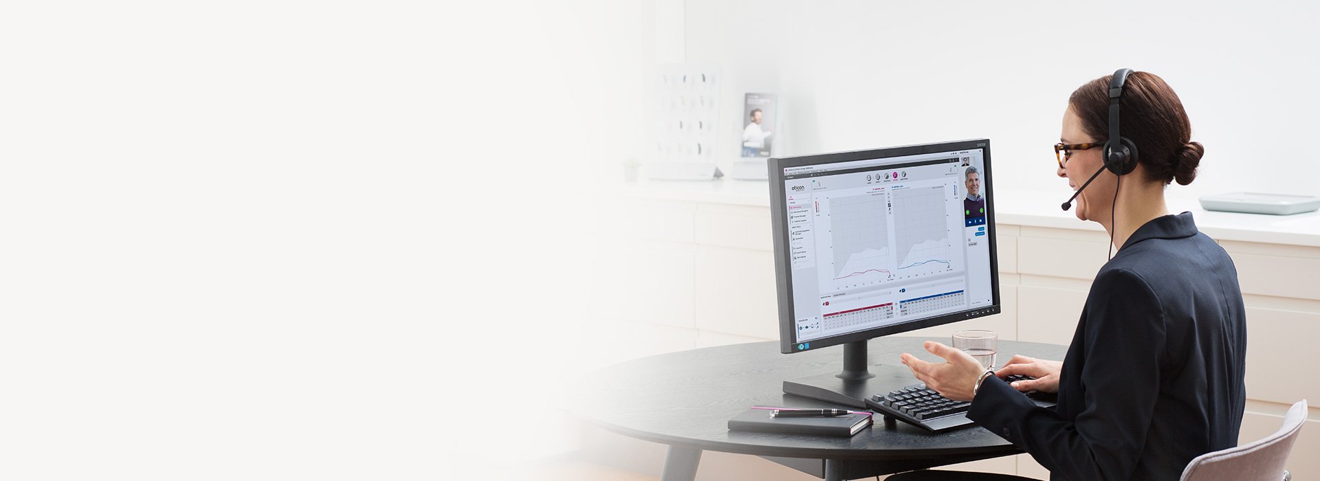 Oticon RemoteCare er en funksjon i Genie 2. Den lar deg holde en virtuell avtale med utvalgte klienter, der du eksternt kan justere høreapparatene deres.